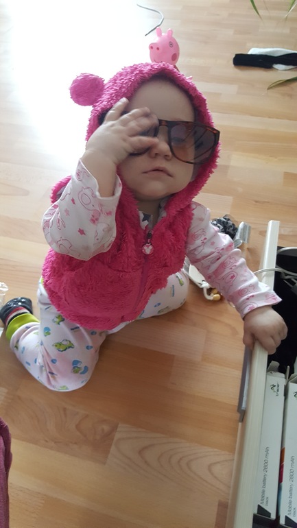 Ходит так же у опоры,но теперь еще научилась подтягиваться на вытинутых ручках,и весит.И Алиса научилась подниматься по леснице.Сама!!(Мы живем в котедже и тут много лесниц)вот спускаться только учимся😋думаю еще в этом месяце начать приучать к горшку.Оо..а еще у нас новая игра,называется выкинь всю одежду из шкафа)))Открывает шкаф и выкидывает все до чего добереться)).Ну как то так...и фото на сладкое