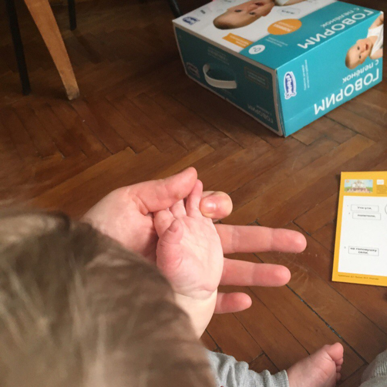 У мелкой моторики есть очень важная особенность. Она связана с нервной системой, зрением, вниманием, памятью и восприятием ребенка. Также ученые доказали, что развитие мелкой моторики и развитие речи очень тесно связаны. А объясняется это очень просто. В головном мозге речевой и моторный центры расположены очень близко друг к другу. Поэтому при стимуляции моторных навыков пальцев рук речевой центр начинает активизироваться. Именно поэтому развитию моторики надо уделять особое внимание. Это развитие сплошь и рядом. Большинство игрушек так, или иначе моторику развивают. Все эти кнопки, шестерёнки, дырочки, пупырышки, сортеры все это помогает развитию. Но как по мне, лучший материал-это крупы, а именно гречка) Она шершавая, мелкая, но не такая сыпучая, как манка. Различные бусинки, пуговицы, камешки. Все подойдёт. Но детям опасно давать такую мелочь, её легко проглотить. Мне повезло, если Мирославу дать соску, то минут 10 он сидит и перебирает её. Но есть такие, малыши, которым соски нипочём. Не оставлять же детей без развития) Есть ещё пальчиковые гимнастики. На мой взгляд, это один из самых эффективных и безопасных способов. Я делала массажики ладошек и пальчиков с рождения. А что бы это было веселее и продуктивнее, приговаривала потешки. Продолжаем этим заниматься до сих пор. Берём наши листалки из "Говорим с пелёнок". Прочитали, перевернули и сделали пальчиковую гимнастику. больше всех нам нравится Сорока-Сорока. Мирославу щекотно, он хохочет) Но недавно, он сам начал повторять. Теперь, если я начинаю рассказывать "Сороку", он загибает пальчики) "Ути-Ути полетели", начинает махать руками, "Ладушки", хлопает в ладоши. Мне такое, по-душе) Есть конечно, ещё и пластилин, краски, гидрогель. Но это же надо все подготовить, разложить, потом отмыть. Не каждый день получается заниматься творчеством. А гидрогелю, я не доверяю, хоть и пишут, что он не токсичен, я пока думаю. А как вы моторику развиваете?