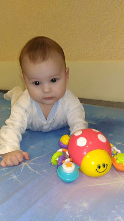 Еще Рустам сегодня сел сам. До этого присаживала ненадолго. Сидит уверенно, хорошо, на бок не валится. Поактивнее Раиля малыш…. Все старается за старшим братиком успеть. За ним все тянется. В 5.5 месяцев начались попытки ползать и вот в 6 мес уже хорошо ползает, когда ему что-то надо. НА ДИВАНЕ ОСТАВЛЯТЬ ЭТОГО ЖУЧКА ТОЧНО УЖЕ ОПАСНО. Еще он очень улыбчивый, всегда улыбается в ответ. Любит, когда приходит бабушка с дедушкой, ну и просто гости. Отличает своих от чужих. Не плачет, но начинает во все стороны смотреть и маму искать, не улыбается чужому.