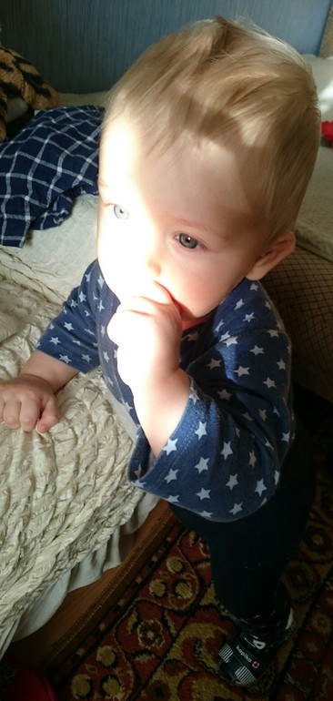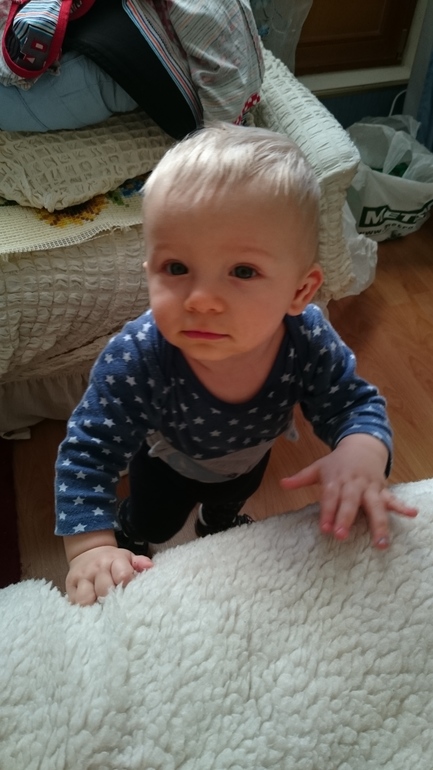 Миша стоит самостоятельно, правда если его поставить, сам редко встаёт, а вот если дать ему в руки игрушку и поставить, то стоять может долго, до минуты, пока не вспомнит, что он стоит, тогда Мишаня тихонько опускается на попку. Вообще заметила, что ребёнок довольно осторожный, не стремится падать лишний раз, если малыш и наворачивается то только лишь по моей нерадивости.