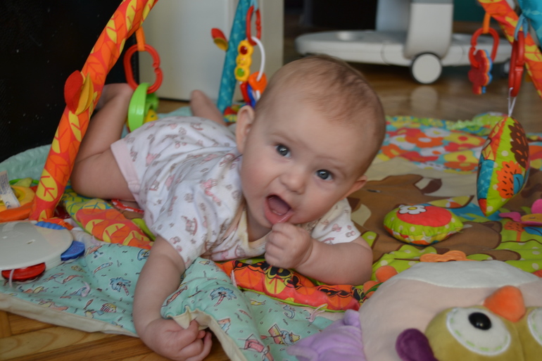Пока Вика тусит все еще в своем развивабщем коврике, но ей там уже конкретно тесно, поэтому в планах прикупить коврик-пазл, что бы ей было там где развернуться.