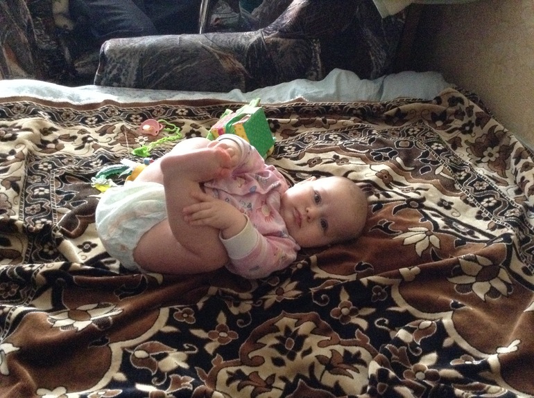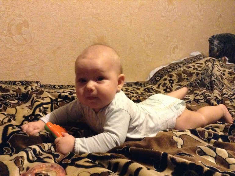 Из умелок: играет игрушками, разговаривает, смеется, морщит носик - смешно так))) , лежа на пузе пытается доползти до игрушки, но пока не сообразит, как это делать, но это не мешает игрушку достать))) переворачивается с живота на спину. На живот оказывается умеет, но не делает((( Была замечена в переворотах, но не жалует их) На животе хорошо лежит, опирается на обе руки. Неделю назад наконец нашла свои ноги, трогает их только так, но до рта еще не дотягиваются))) Пытается сесть, если дать пальчики, то садится видит ноги свои, хватает их и падает на бок)))