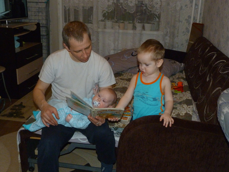 Но младший мой сынок по сравнению с другими моими сыновьями просто золото. Ну или может я уже не так напрягаюсь с ним, как со старшими. Первое время он только ел да спал, ел да спал. В первый месяц я даже иногда сомневалась, рожала я или нет, ребенка не слышно было, спал по 5 часов с перерывом в один час бодрствования. Вообще мне в этом плане с ним повезло, т.к. папа у нас приехал из командировки только, когда Арсюшке было почти 2 месяца. И эти 2 месяца я жила одна с детьми. Бабушка конечно приезжала иногда, старший сын помогал. Основная трудность была скакать по 2 комнатам ночью, т.к. Тимофей до сих пор иногда очень плохо спит, может проснуться раз 5 за ночь, а может и всю ночь спать. Поэтому, когда приехал папа, я вздохнула с облегчением и среднего перекинула на него. Потом у нас была ревность и истерики из-за нехватки маминого внимания, но этот период мы почти преодолели. Впереди опять папина командировка на все лето и половину осени, детский сад и продолжение ремонта, который мы начали прошлым летом. Но я настроена оптимистически, все равно будет легче, чем прошлым летом.