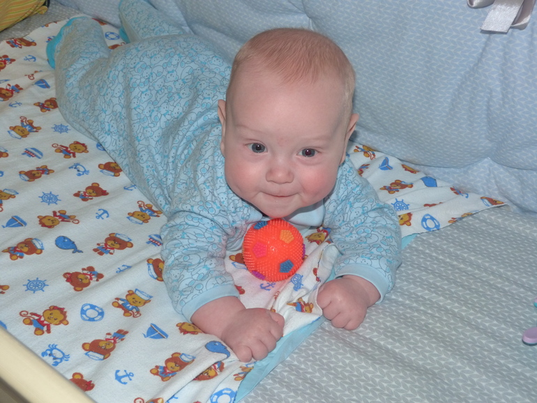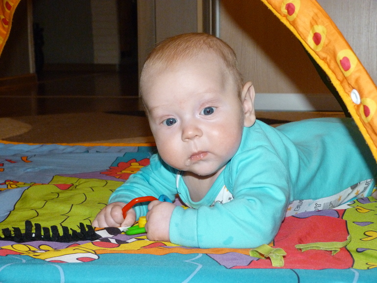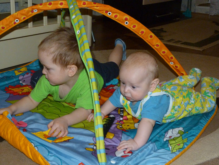 Я рада, что малыш середнячок, мою спину с остеохондрозом лучше не подвергать большим нагрузкам, тем более сейчас мелкий лежать не хочет, ползать не может, а только ездит на руках. Да кстати, Тимофей у нас пополз в 6 месяцев, Илья тоже рано. Арсений пока не может, пока летает, лежа на животе) В последний месяц так заметно, что растет, много умелок появилось. Играется много, везде лезет, все трогает, хочет общаться со всеми, включая кошку, за Тимофеем прям как завороженный наблюдает, как тот носится. Как же хорошо, что у них с Тимой небольшая разница в возрасте. Надеюсь, будут лучшими друзьями. Илья то совсем большой стал, ему неинтересно с ними.
