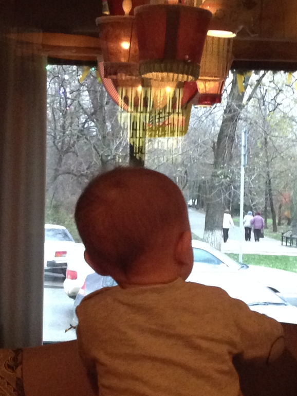 Пришли, сели, заказали и всё -сидеть в люльке-сиденье дочке категорически не хотелось, хоть там и висели игрушки. Стали держать с мужем поочереди на руках и быстро есть т.к. она стала капризничать:)))
