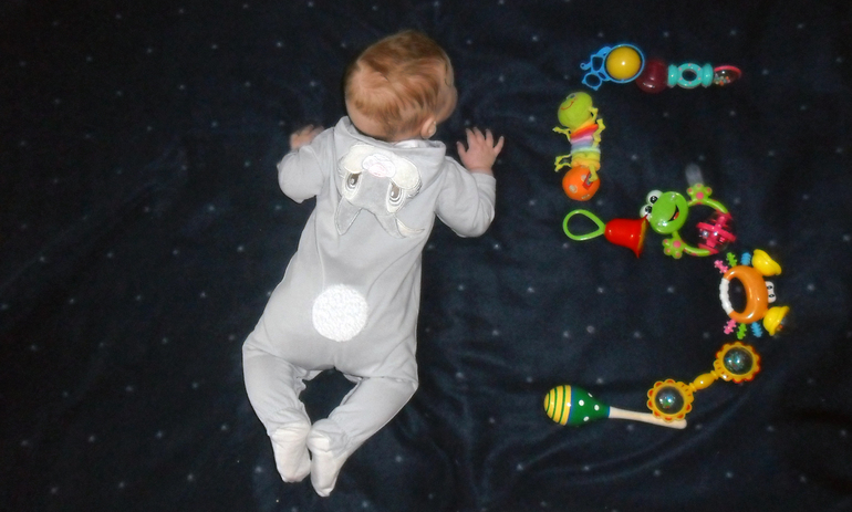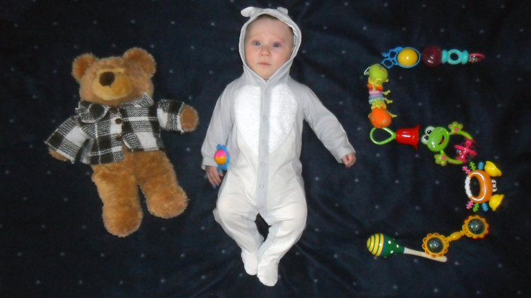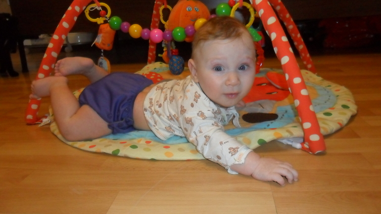 Напишу чем в основном занимаемся, ничего фантастического, никакого раннего развития))) Лежит на коврике с игрушками, или просто лежит на полу и следит за котами, визжит от счастья когда их видит. Я с ним играю игрушками, делаем гимнастику и упражнения на фитоболе, любит очень слушать стишки и потешки, играем в ладушки и тому подобное. Ходим по квартире, все трогаем и разглядываем, обожаем люстру на кухне и смотреть в окно. Стали читать книжки с картинками. Хохочет прям заливается от игры в ку-ку, когдя я его пеленкой закрываю и открываю, а потом себя. В общем, все мамы наверно так детей умеют развлекать. Ну и фоточки=)