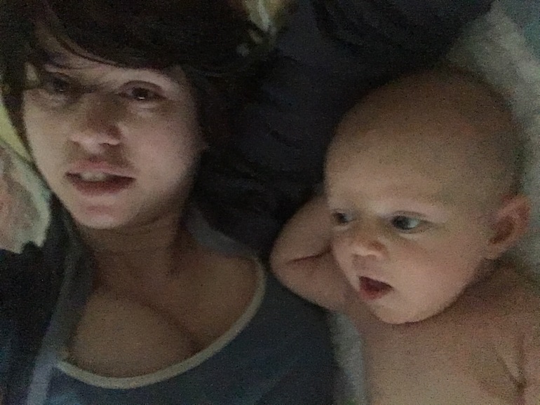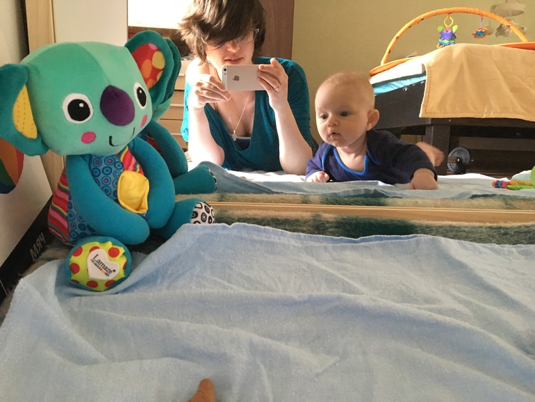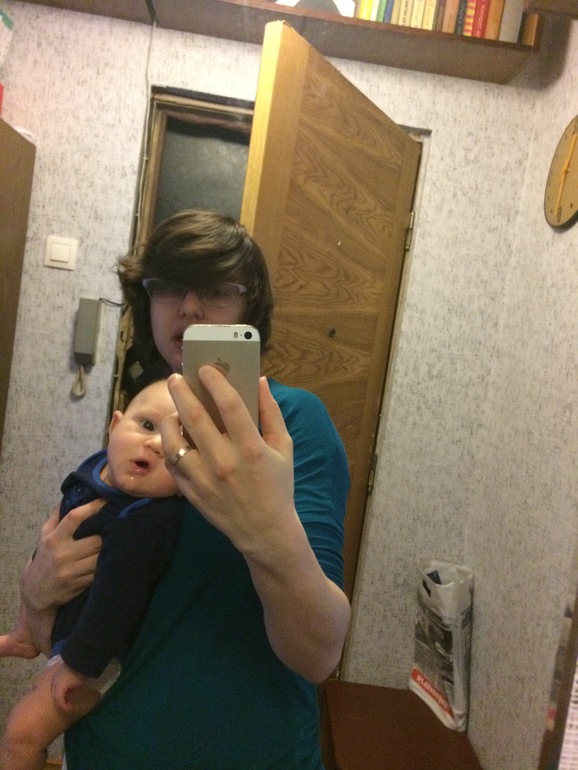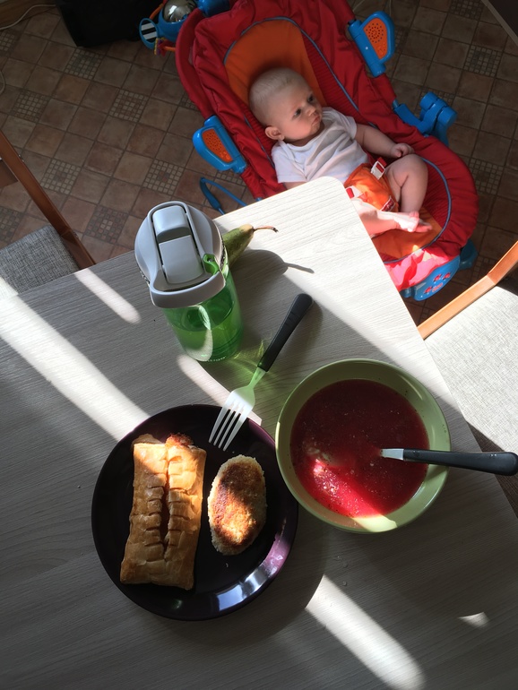 10:30 Мишка окончательно проснулся (до этого пара попыток проснуться пресекались). Вообще просыпания ему пока тяжело даются, но если успеть пообнимать и поцеловать, то сильно не успеет расстроиться.