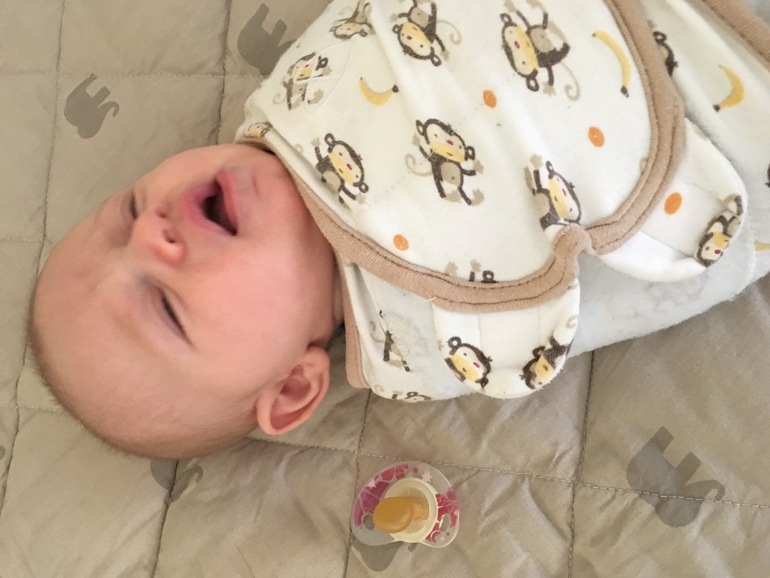 9:20 Дождался Мишаня второго завтрака. Но если вы думаете, что этот младенец спокойно ест и наслаждается, то это ни разу не так. Через 2-3 минуты начинает сползание с соска, нытьё и размахивание руками. Сколько-то минут я выдерживаю, а потом даю соску (здесь зрители ахают и гневно улюлюкают). С соской он тоже, конечно, проделывает похожие вещи, но сегодня решил примерить её в качестве шляпки.