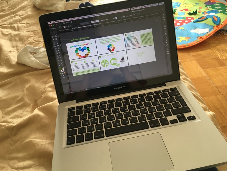 15:20 Уложила спать. Сегодня это подозрительно легко получается. Опять ВБ полтора часа. А я села поработать немного. Нужно доделать презентацию для благотворительного фонда.