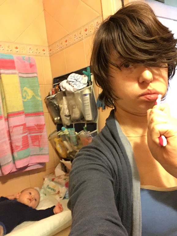 8:30 Тащимся в ванную, матери ж тоже процедур надо. У меня чистка зубов, душ и крем для лица (не так давно стало получаться всё из этого делать).
