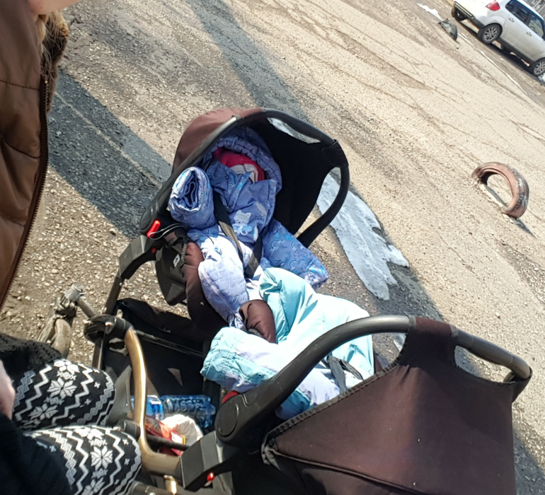 Гуляем в прогулке. Без одеял,конвертов и пр. Колготки,боди с длинным рукавом,флисовая поддева (комбезик) и комбинезон демисезонный. Ноги дополнительно не утепляю. Шапочка вязанная с х/б подкладом.