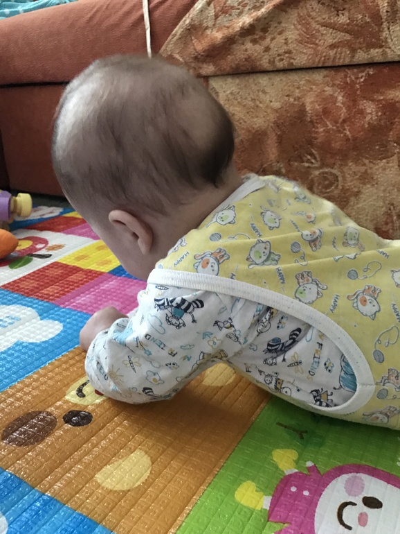6) пытается ползти, не получается, психует🙄 поднимает вверх руки и ногами стучит при этом соответственно лежит на месте😂✋🏻
