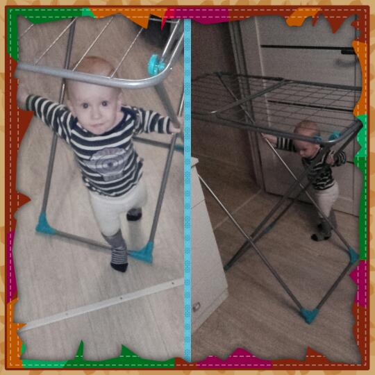 А мы вот ленимся, ходит только за ручку, сам не хочет пока, один шаг сделает и садится, видимо попа тяжелая