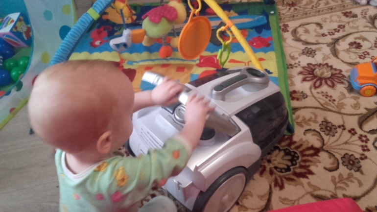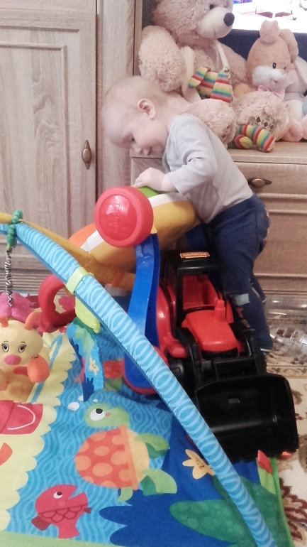 Игры по прежнему: все разбросать, он ходит по квартире, как ураган. Спальня , ванна и туалет заперты. Его раздолье гостинная, коридор и кухня. Мне отличная зарядка, хожу постоянно все с пола за ним собираю.