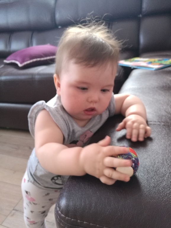 Отчёты по месяцам12 кг, 74 см. В 7,5 месяцев поползла быстро))) но как она ползает ..смешно...ногу под себя подтягивает..и так быстро..встает у опоры и ходит вдоль дивана...стоит уже придерживаясь одной рукой...хлопает ладушки и показывает привет. Из звуков..мамамам...когда плачет, нанана..когда злится...а а а ..когда какаяет...утром стабильно в горшок в 6 утра!!! Днем 1-2 раза грудь... ночью 2 раза...хочу постепенно отлучать, но она ничего не хочет..ночью..кроме сиси. Бутылки не берет. Соску тоже. Пьет только из кружки и ложки. Надо что то придумать...она пол ночи со мной спит. Это очень неудобно и нельзя. Старшая до школы со мной спала. Я этого не хочу. Ест она утром кашу,кефир в обед овощи, полдник творог, фрукты, вечером каша безмолочная. Очень обидчивая. И мамкина.. облизуха. Начался период везделазанья. Только Леру начало отпускать...от этого дела..вот сейчас с Кирой все началось..уже открывает ящики..лезит в цветы, в камин..ит.дд. только смотри в оба. Мы ее называем инженер. Она очень любит ковыряться, разбирать что то изучать...Начали изучать карточки.