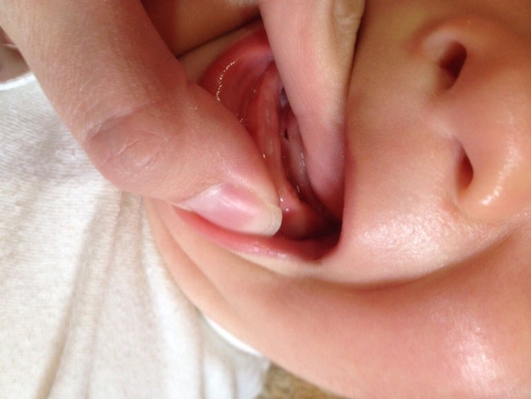 ЗубыСитуация такая: в 7,9 и 7,19 прорезались, как и положено, нижние зубки. Я надеялась на перерыв, но мой товарищ вёл себя безобразно, я намазывала верхнюю десну. В итоге, во время крика, я обнаруживаю, что расползлась десна совсем не там, где жду я, а клык. Я за ложкой: стучит! Ну, думаю- клык, все бывает. Показала мужу, врачу- все видели и кивали головой, мол, дааааа, зуб. Прошёл месяц, передние зубки подросли, а клык так и остался без изменений, то есть дырка в десне есть ( не точка, широкая под зуб), стучит, но. Не растёт. Считать ли его зубом или нет? Может у кого было что похожее? ( фото под кат)