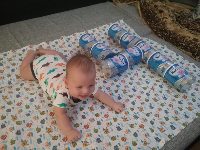 Отчёты по месяцамМесяц пролетел,как один день,Ванечка начал переворачиваться и сводить меня с ума.почти неделю круговерть продолжалась без остановки,потом его отпустило. Он переворачивается часто,но без истерик.сегодня нашёл ноги,внимание привлекли пальцы,он их схватил,рассмотрел и все...больше пока не привлекают они его.очень сильно стало развиваться внимание,следит за всем,что у меня в руках,начал хватать игрушки и естественно все сразу в рот.едим также 5 раз по 180 мл,через 3,5 часа.спит по прежнему всю ночь. На улице спать почти перестал,рассматривает небо и листочки,но если дома он всему радуется, то на улице это сама серьезность, улыбок нет.вес и рост не знаю,только на следующей неделе пойдём, месяц назад было 7 кг,62 см.