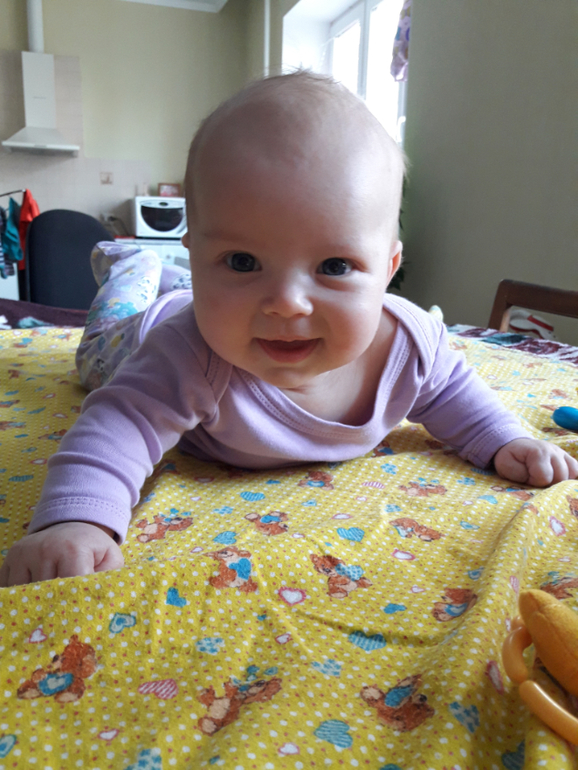 В этом месяце мы прошли курс электрофореза и общего массажа. Массажист сказала, что малышка очень крепкая и упорная. И рано сядет и побежит. Будем ждать!
