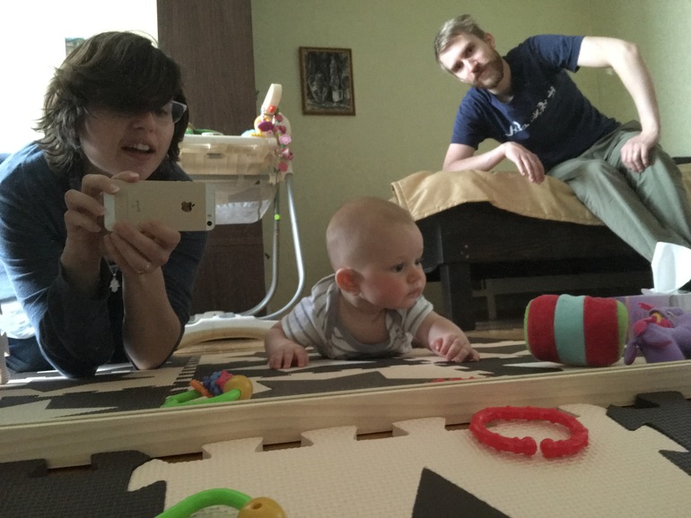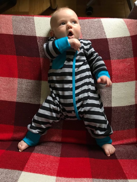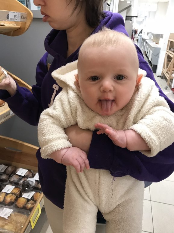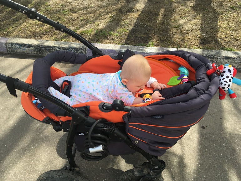 Такой он угарный этот Михаил. Вовсю болтает на своём языке, научился верещать и радостно закрепляет этот навык. Очень смешно, когда высовывает язык и при этом пытается что-то говорить. И моя мама научила его делать «бррр», как вот лошадка делает. Сейчас он в коляске почти не спит и, когда сытый, едет там и рассказывает мне всё, что видит (ну это если не орёт «я не хочу здесь лежать, спасите-помогите» и если не включает свой режим «воля-неволя»).
