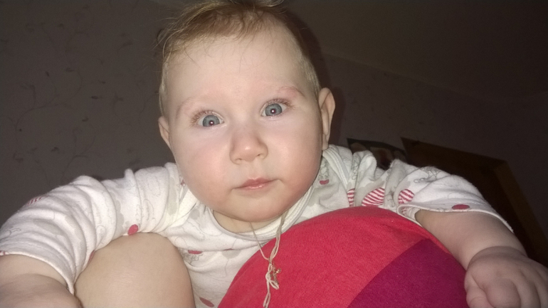 Продолжает радовать своей общительностью и не пугливостью. Идет охотно ко всем на руки, всем улыбается, не пугается новых мест, главное, чтобы я была рядом)