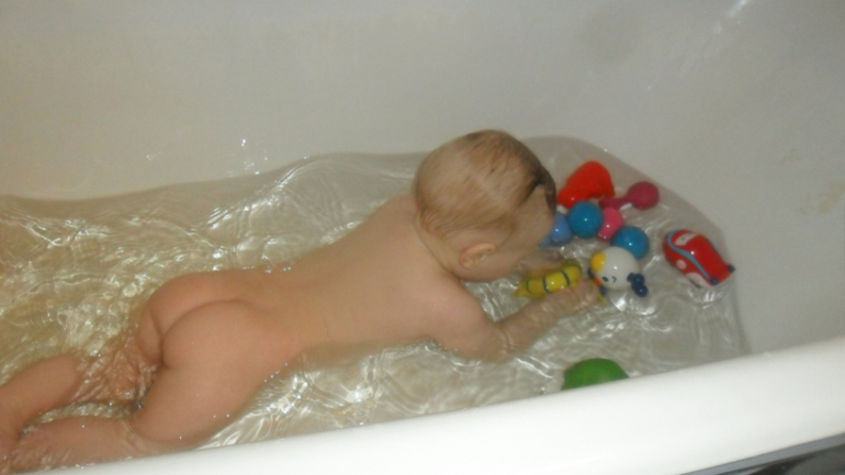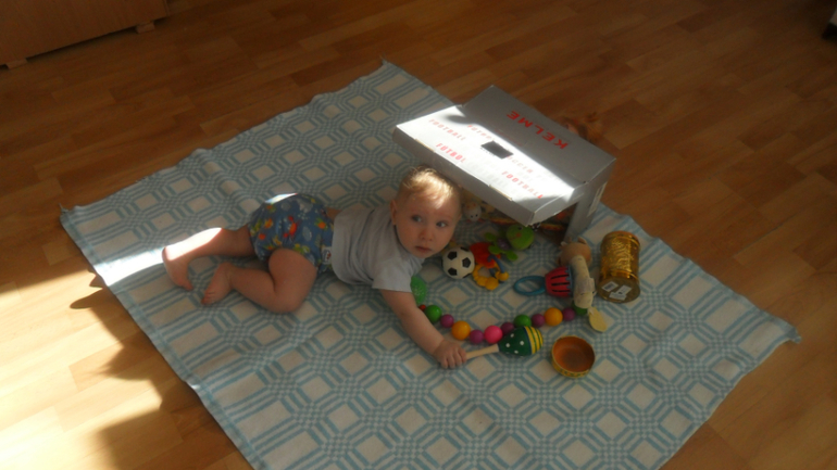 Лежать одному - НЕТ. Если мама где-то рядом, то подползаем и ноем, и ноем, и еще раз ноем. Или лежи рядом мать и играй со мной или носи на руках. Но перед ночным сном после купания наоборот включается турборежим, надо наползаться, тогда я не нужна. Утром тоже дает мне поспать, и после пробуждения играет один полчаса-час.