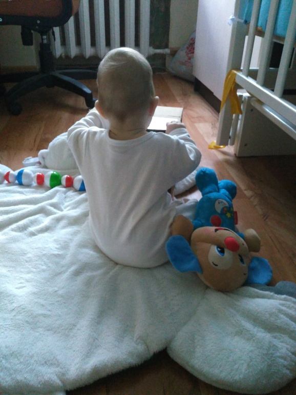 Итак, чему научился активный и улыбчивый мальчик: сам сидит из всех положений с ровной спиной,ползает, начал вставать на ножки в кроватке, говорит много чего, лепечет, классно получается: "мамама, папа, ага, да-да, баба, ненене", конечно, ещё не осознанно, но часто в тему😄