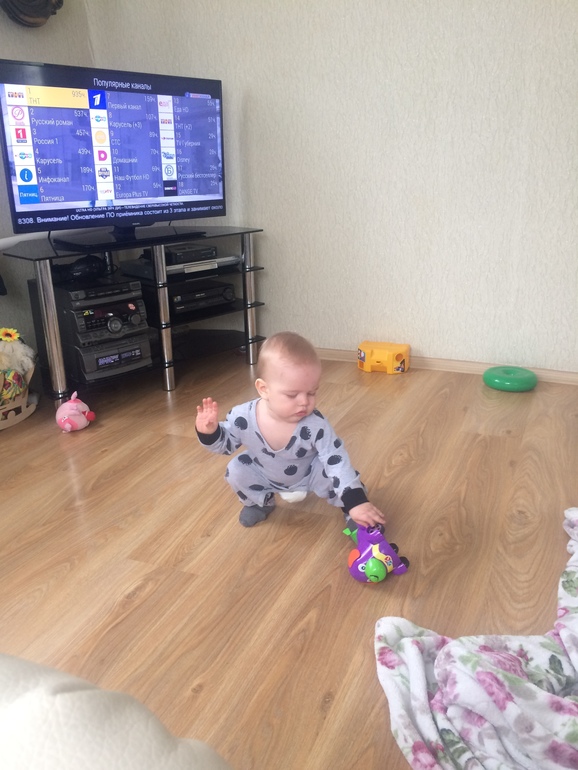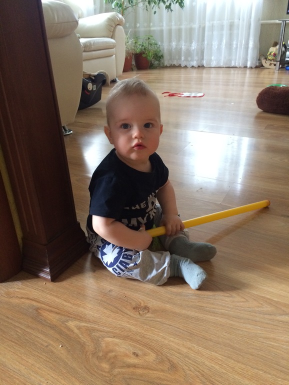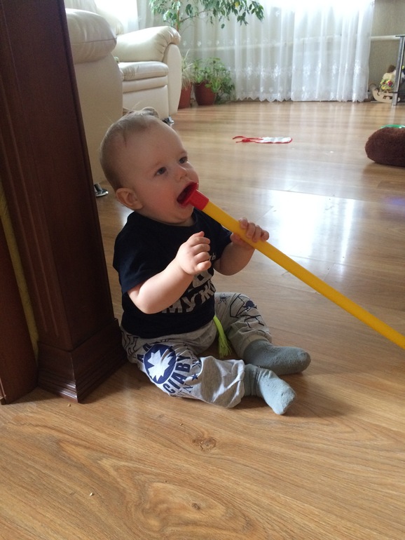 Сладкий умняха! Крупный парень и высокий, по верхней границе развития вы наверное растете. У нас тоже с пола все в рот, дедушка наш в шоке, а я не напрягаюсь с этим, все равно засунет в рот, то что захочет засунуть. Мы тут недавно в песочнице поиграли, минут10 перебирала руками я все ждала когда же уже в рот сунет:))) но ей интереснее было руками копошиться в песке и только я отвернулась, как раз и рука в рот ;)