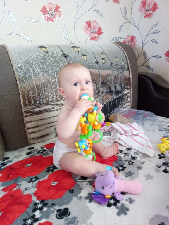 Наши достижения! Как я уже писала в предыдущем посте про наши 3 и 4 месяца, Милу настиг регресс сна в 3 месяца. Было очень тяжело и нам и ей понять, что происходит.Пятый месяц был очень спокойный, ну прям очень. Правду говорят " затишье перед бурей " Но вот шестой месяц... Итак, в 5 месяцев и 5 дней Мила поползла, 5 месяцев и 10 дней начала присаживаться( с опорой на ручку) , в 5.5 месяцев села самостоятельно и в этот же день встала у опоры. Теперь за ней не просто уследить)))) ползает, как метиор и тут же ищет опору, что б поднять свою попу.