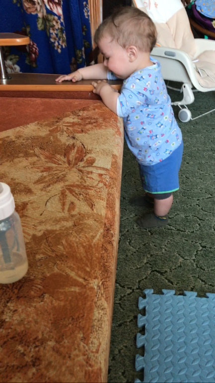 Сегодня пока мыла полы в другом конце комнаты, наблюдала картину, как мой сын маленькими и пока неуверенными шажочками (держась при этом за диван) шел к ноуту мужа который лежал на другом конце дивана.
