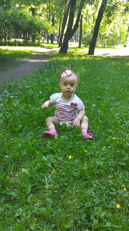 были сегодня в парке , увидела первый раз траву😁погода была уж слишком хорошей