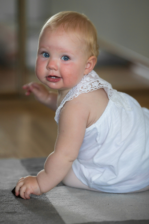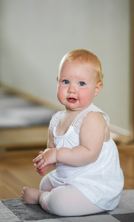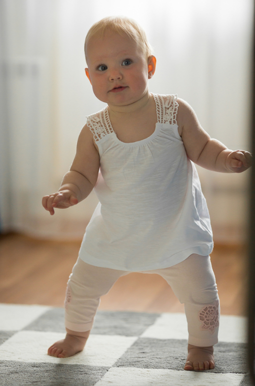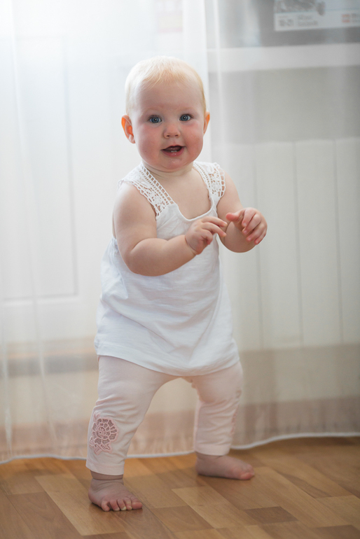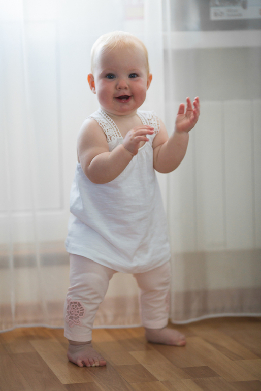 Ника стоит сама и делает 1-2 шага, видно, что она очень острожная девочка. Боится чужих людей, когда на нее кто-то пристально смотрит, или улыбается кто-то незнакомый, она начинает плакать.Под сильно хорошее настроение она может быть нейтральной, но улыбаться чужим? неее. это не для нее. Зато своей семье улыбок море. Замечательно они играют с Ромой (ему 4 года), он бесится ползает рядом, в куку , а она счастлива, хохочет, за ним ползает. Даня для нее почти родитель, он и относится к ней по- опекунски. С ним можно смело оставлять под надзор- он присмотрит, отвлечет. Папа- это Никина радость) Как она со всех ног несется вечером к нему! Встает и тянет руки, кладет головку на грудь ему) папа просто растворяется! Она и слово выучила ПАПА, всегда так говорит шепотом "па-па". Ко мне обращается МАМА, это точно, не случайно. Из лепета еще звук ба-ба и так, по мелочи.