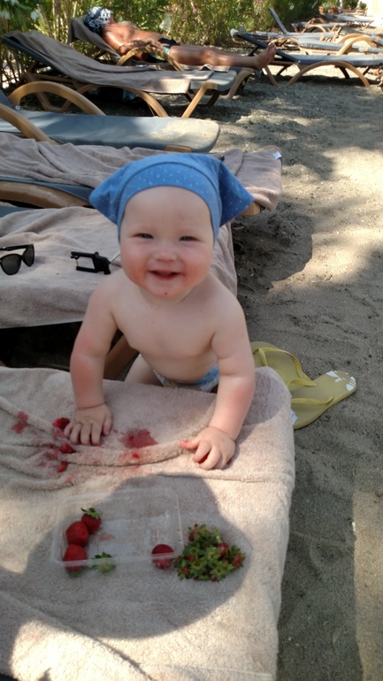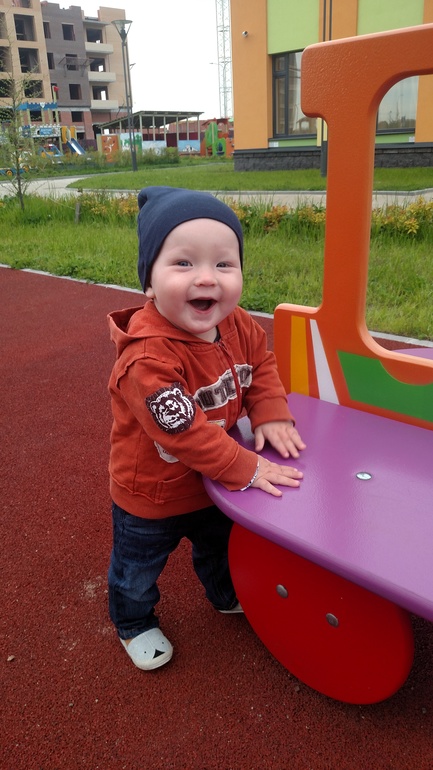 Отчёты по месяцамПодумать только, через месяц Тимошке будет год! А вроде только родила)) Что имеем) Наконееееец то у нас вылезли зубы. Я уж думала до года не дождусь 😁 22 июня застучал, на верху справа, а 24 уже второй, рядышком) Капризный конечно жуть. Ещё начал кушать) О боги) Ура) Причем кушать начал, когда мы полетели в Турцию)) Утром теперь каша, в обед суп, ну а вечером по разному. Из молочки йогурты, тк на творог аллергия. Каши варю на воде. Обожает бананы. Нектарины сейчас кушает. Когда отбираешь, ор стоит на всю квартиру) Вобще покричать мы любим. Кричит громко и звонко, как птеродактиль))) Это он так общается. Любит играть в ладушки, машет двумя руками пока пока))))) Немного научился слезать с кровати) А вчера первый раз прошел по комнате, везя перед собой машинку)) До этого все возле кровати/стены передвигался. Спит 2 раза в день. Но вот сегодня будет один сон, потому что мы только что проснулись)) Очень любит сестру)) Радуется прям, когда она приходит из садика. Играют в прятки, Лера бегает, а он за ней, что то типа догонялок получается)) Вот такие вот у нас дела) Подкрались мы почти к году) Оох, растет сын невероятно быстро. Ну и фото)