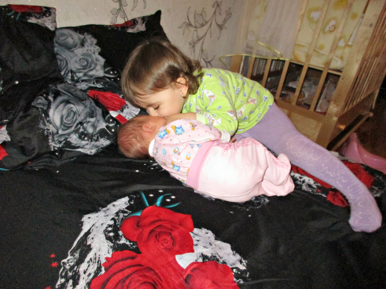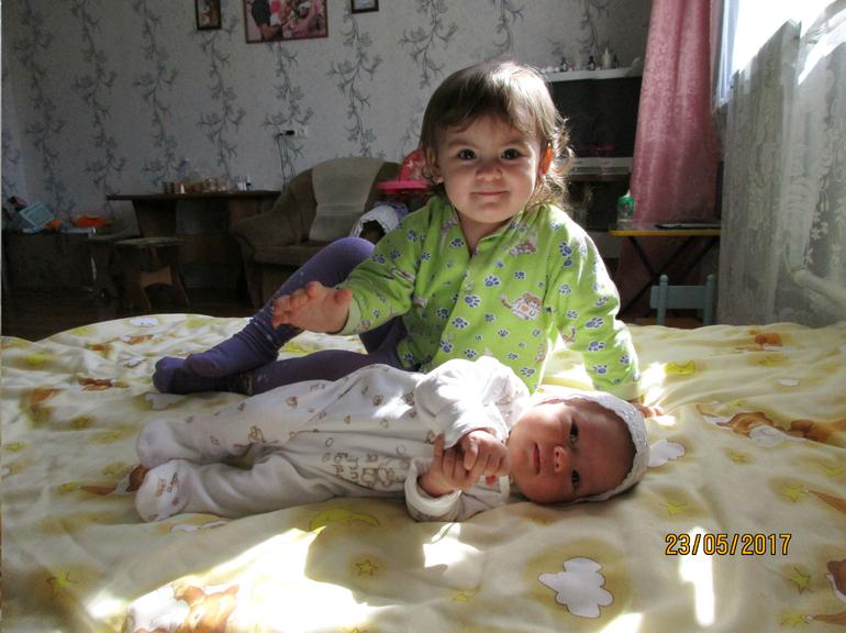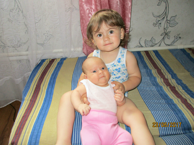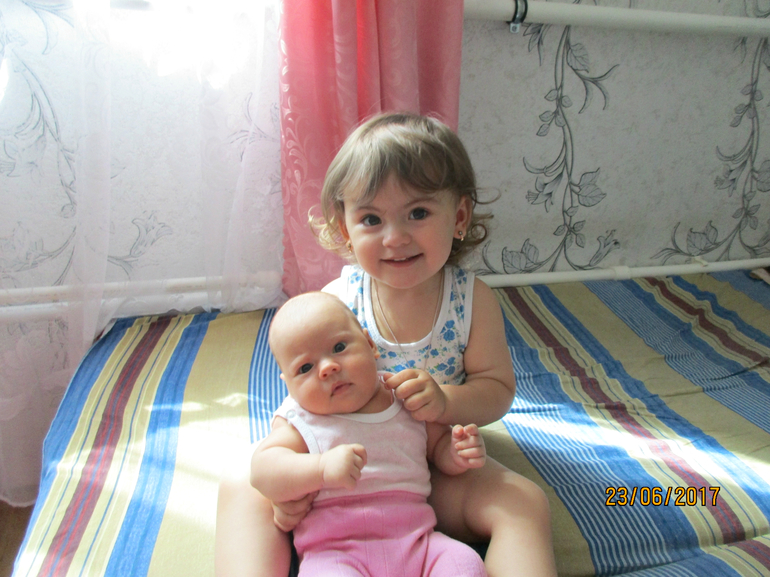 ЗнакомимсяДавно я не заходила на ББ, исправляюсь. За эти 2 месяца мы стали крепче, наели щеки, умеем держать головку(но конечно устает быстро), улыбаемся, начинаем издавать забавные звуки. Недавно мы покрестили Лерочку, все прошло очень замечательно, очень добрый Батюшка, держал доченьку как хрустальную вазу, Лера даже не плакала. Я конечно думала с двумя будет очень тяжело, все боялась как я справлюсь, но только зря переживала, вроде справляюсь. Конечно бывают моменты когда у Лерочки животик болит она плачет, тут же начинает моя старшая рыдать, например из за того что я не дала поесть землю, или наступить в грязь, но ничего страшного. Слава богу страшные колики, которые были у первой дочки нас обошли стороной. Время стало пролетать еще быстрее, ведь ужу целых 2 месяца