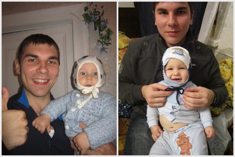 слева Вася сейчас (9 мес), справа Миша почти 3 года назад. на фото ему около года. папа один и тот же (: