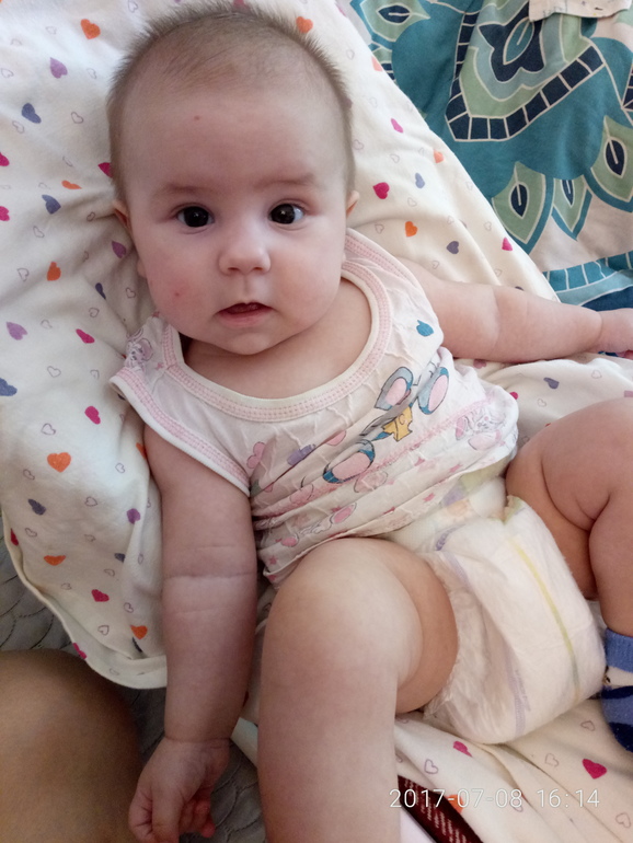 Отчёты по месяцамсегодня были в больнице, прибавили 400 грамм, выросли на 4 см. Вес 6900 рост 65 см. Из умелок: перевернулась на живот сама только один раз, так ленится не хочет да и на животе особо лежать не нравится. Снимает носки с ног разглядывать пальчики на ногах. Перекладывать игрушки с одной руки в другую, сама берет игрушки. Хорошо стоит на ногах, не любит лежать, нравится когда присаживаю ее, пытается сесть сама полностью. Ну и фото)))