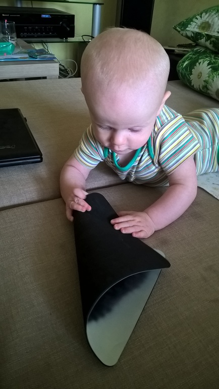 По сравнению с собой пятимесячным Коля сильно вырос. И главное даже не то, что начал ползти и не прикорм, а то, что он из маленькой "вещи в себе" превратился в социальное существо)
