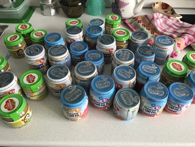 В МО (Мытищи), до 6-ти месяцев Агу мама и сое, если ГВ. После 6-ти на выбор несколько вариантов пюре,сок/каши,сок.. как то так. Пюре не много не на месяц, но мне кажется это демон чем ничего.