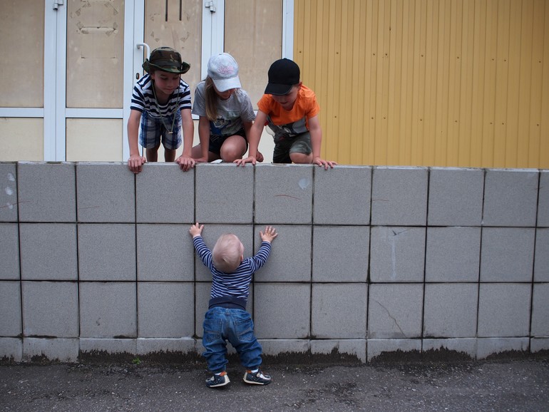 Старший сын придумал развлекуху для младшего: сажает его на крышку ящика от игрушек с колесиками и катает по всей квартире - тот хохочет. Иногда к своеобразной игре присоединяются другие дети. Тогда Федя кричит: "Встречайте старшего кавалера!", а Настя и Тимофей включают настольную лампу и готовят ему дорожку, по которой надо проехать.