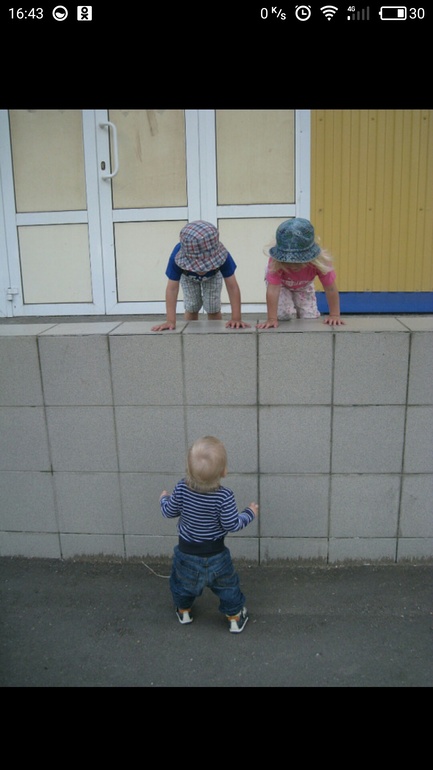Научился выбираться из кроватки: просто подходит к заниженной стенке и перегибается через нее, падая на нашу кровать. Ничего не боится мальчик.