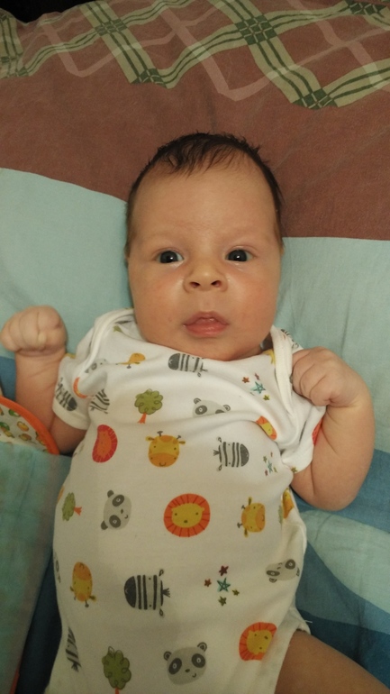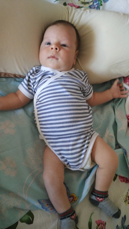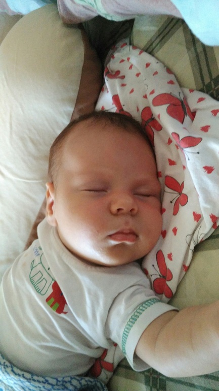 Ночью вроде нормально спит, пару-тройку раз ест, но вот в 6 утра стабильно просыпается и полчаса не спит, у нас воздушно-газовые процедуры) Потом ещё спит на сисе, рекорд был до 11:30, но это Даша у бабушки ночевала, а так обычно до 9. В течение дня 3-4 раза спит, и лучше всего если прохладно, в жару очень плохо спит. Щас ещё стал более активный, руками, ногами машет и пугается ручек своих, вернулись к пеленания на сон, думаю месяцев до 3-х, пока к ручкам не привыкнет.