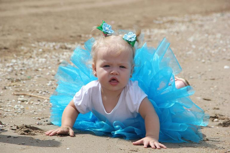 Они с братом шли за ручку и Софа упала, вставать отказалась и начала есть песок
