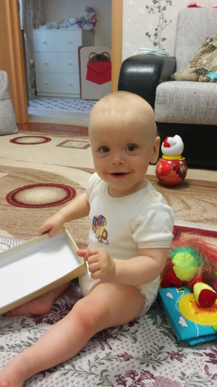 Спасибо!) играет он в основном сам, если есть настроение может по долгу играть с игрушками. Любит катать мяч, разбирает пирамидку, любимое занятие ходить у опоры, а лучше всего если мама водит по квартире за ручки! Показываю иногда ему картинки, прошу чтоб сам показал ручкой где мишка и т.д.