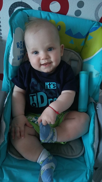 Спасибо!Ну,он у меня сам не сидит ещё... Это так получилось на фото,он полусидя... Спинка не 90"в 5 начала полулежа делать, потом полусидя, потом на ручках присаживать под 90 *