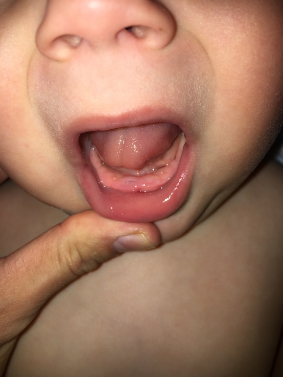 ЗубыНу наконец то!)) 5м 26дн, нижний левый резец, увидела вчера когда балдел на матрасике в ванной и широко открывал рот, а свет сверху позволил рассмотреть содержимое) и на палец чувствуется и ложка звенит) достоверно позавчера его ещё там не было так как десна просвечивала и я стучала ложкой))