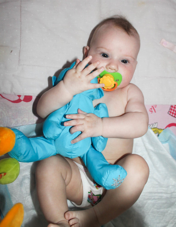 Зацеловываю ее ежеминутно. Приближаюсь к ней , чтобы поцеловать;а доча уже вся расплывается в улыбке и тянет свои ручки, чтобы схватить за волосы меня ( видимо тоже так свою любовь выражает). С Софией все эти моменты забылись уже. А сейчас во мне столько любви к Танюшке.Через край просто))))