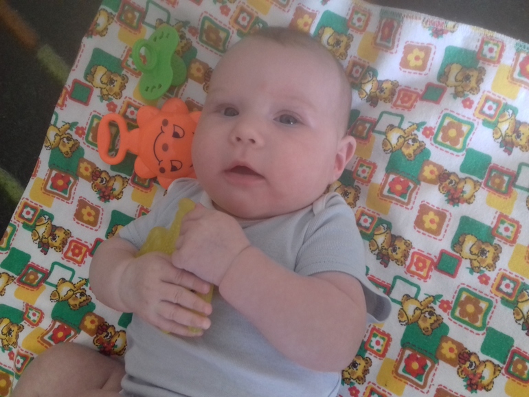 За последние 2 недели дочка загорела. Принимали солнечные ванны в деревне. Ходим без памперса. Одеваем только гулять и спать. Кушаем достаточно хорошо.Перешли полностью на смесь. Молоко пропало (. Прикорм начали вводить. Пюрешки нам очень понравились. И брокколи и цветную капусту с удовольствием кушает. Пробовали пюрешку с черносливом , грушей и яблоком. Тоже уплетает за обе щеки.