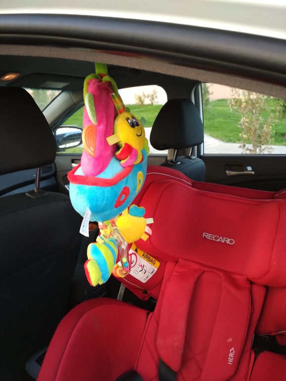 Корабль я раньше вешала на спинку,которая заднего сиденья,чтоб он тоже смотрел на него ,а это вот последний раз так ездили.