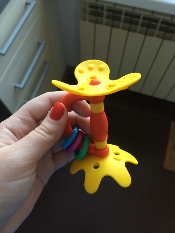 Ух ты, крутая. Наверное приятно дёсна чешет. У нас грызла мой палец когда я ей силиконовой щёткой напалечником дёсна чесала, но без присмотра его не отдаш погрызть может подавиться, а тут прям то что надо и с ограничителем. Что за фирма?