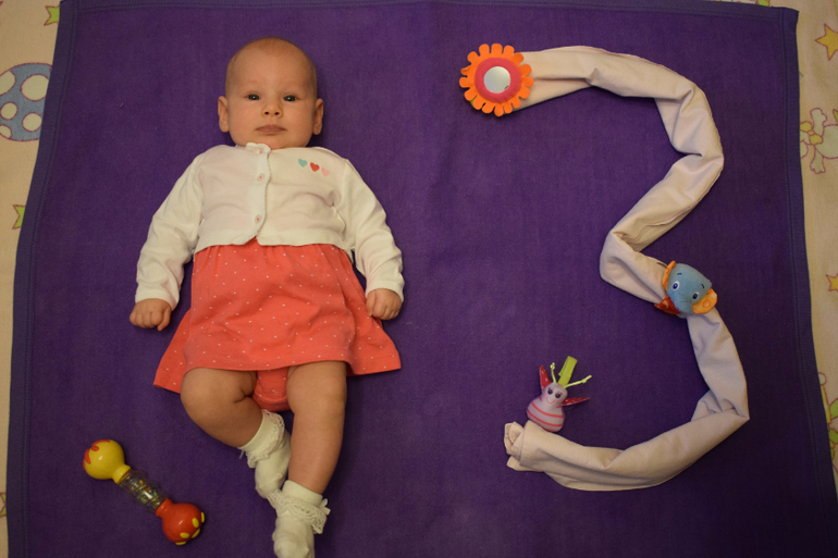 Начался четвёртый месяц с курса массажа (уже два раза делали) и с посещения врачей (педиатр, невролог, хирург-ортопед, анализы крови и мочи). Невролог и массажистка обе сказали, что Тася идеально развивается, по ворастной норме, редко встречаются такие детки (тьфу-тьфу-тьфу, пусть и дальше у нас всё будет отлично). Невролог даже не увидела показаний к текущему курсу массажа.
