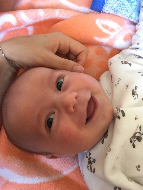 Сережа улыбашка, вот как начал с первых дней улыбаться так и продолжает открыто улыбаться всему миру (дочка до года была суровой девочкой, улыбку клещами вытаскивали). Меня узнает и одаривает меня своей очаровательной улыбкой) Еще и глазки умеет строить)))